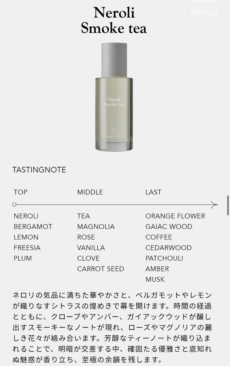 ロア ザ オイル ネロリ スモークティー 100ml
