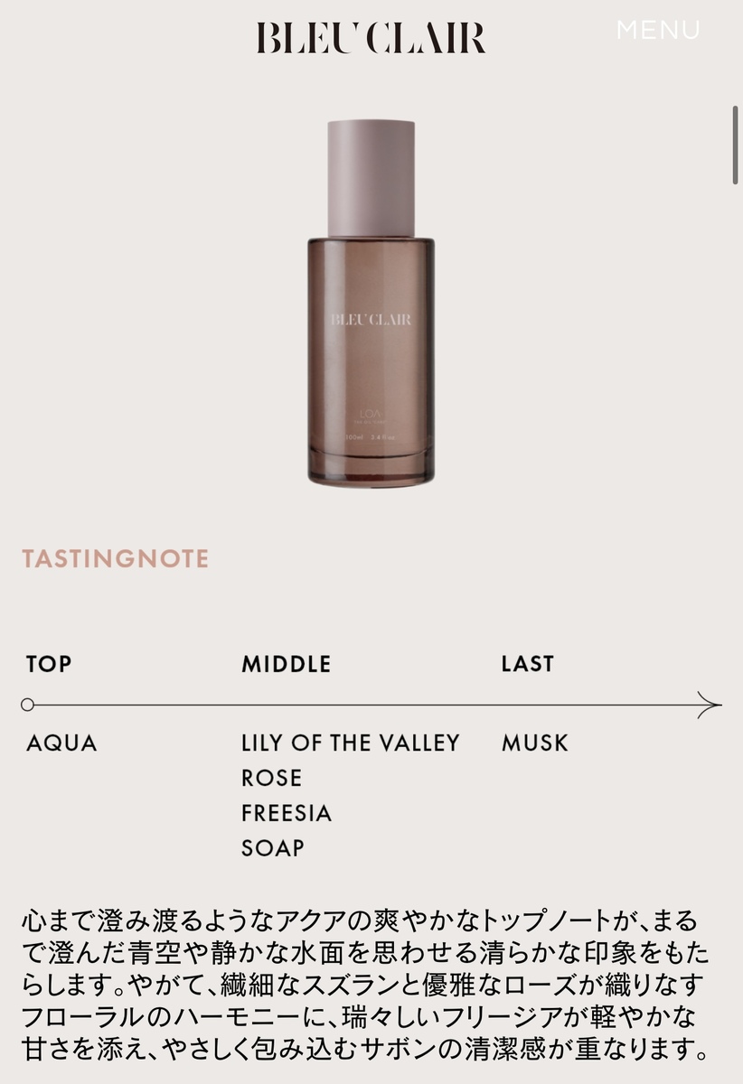 心まで澄み渡るようなアクアの爽やかなトップノートが