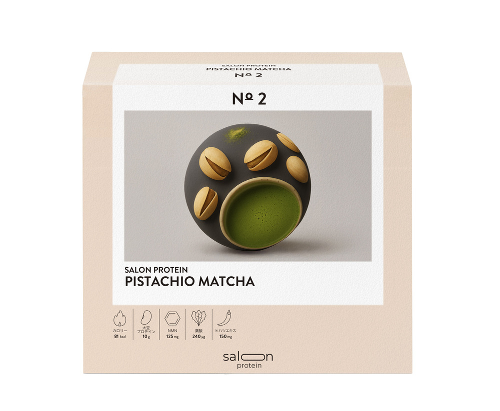 最高品質のタンパク質。濃厚ピスタチオと宇治抹茶が奏でる贅沢な一杯で、内側から美しく。