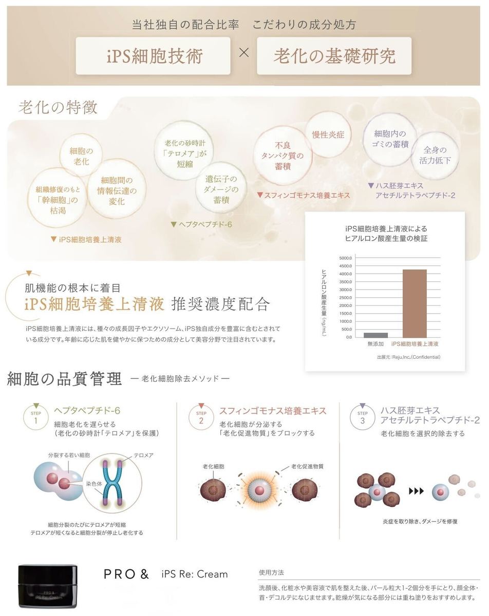 皮膚専門家開発。ヒトiPS細胞培養上清液を高配合し、独自の3ステップメソッドで老化細胞を除去。