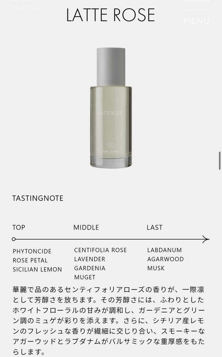 華 麗 で 品 の あ る セ ン テ ィ フ ォ リ ア ロ ー ズ の 香 り が 、一 際 漂 と し て 芳 醇 さ を 放 ち ま す 。 その 芳 醇 さ に は 、 ふ わ り と し た ホ ワ イ ト フ ロ ー ラ ル の 甘 み が 調 和 し 、 ガ ー デ ニ ア と グ リ ー ン